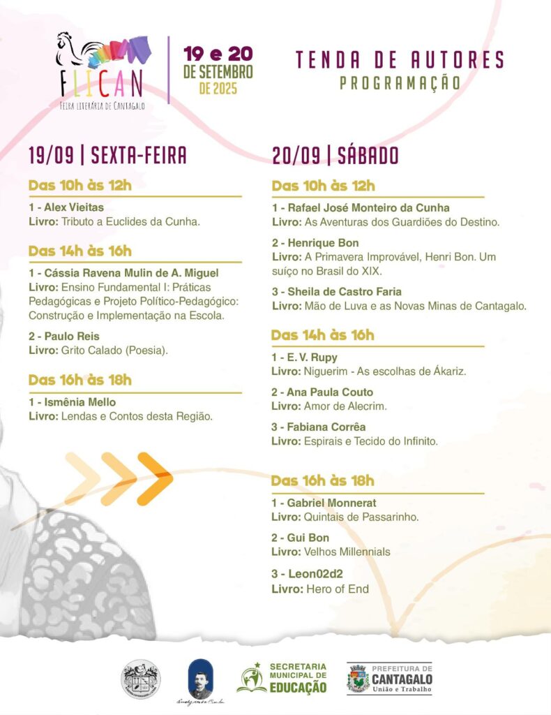 A Feira Literária de Cantagalo, a FLICAN, que em 2025 tem como autora homenageada a poeta Cora Coralina, teve início neste 19 de setembro com muitas atividades das escolas, apresentações, envolvimento do comércio e lançamentos de livros.